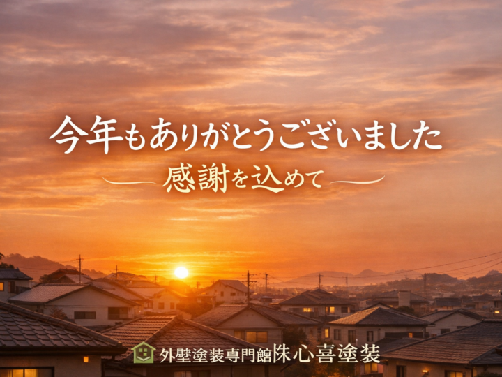 【年内最終日】今年もありがとうございました。 外壁塗装専門館 ㈱心喜塗装です。 本日をもちまして、今年の営業も無事に最終日を迎えることができました。 こうして一年を締めくくれるのも、皆さま一人ひとりとのご縁があってこそで […]続きはこちら